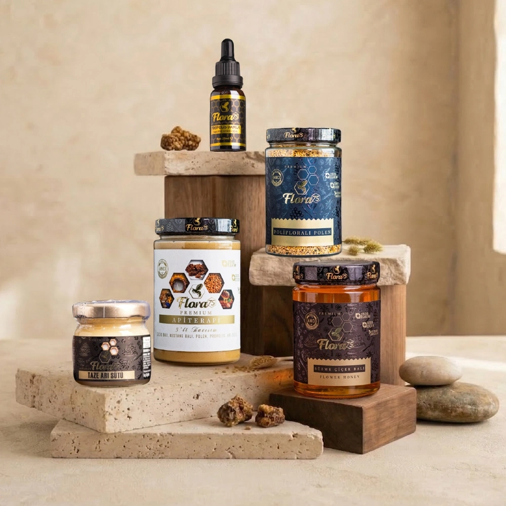 Doğal arı ürünlerinin bir araya geldiği destekleyici bir settir.