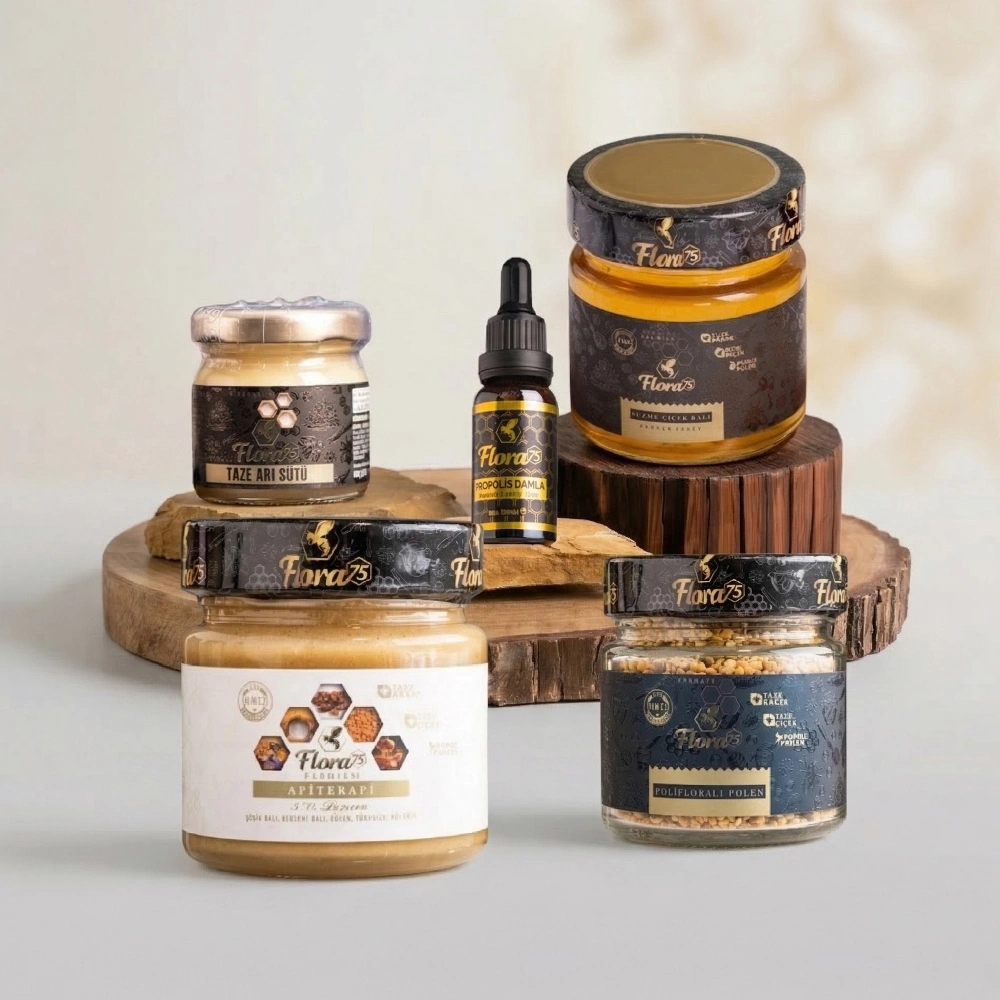 Doğal arı ürünlerinin bir araya geldiği destekleyici bir settir.
