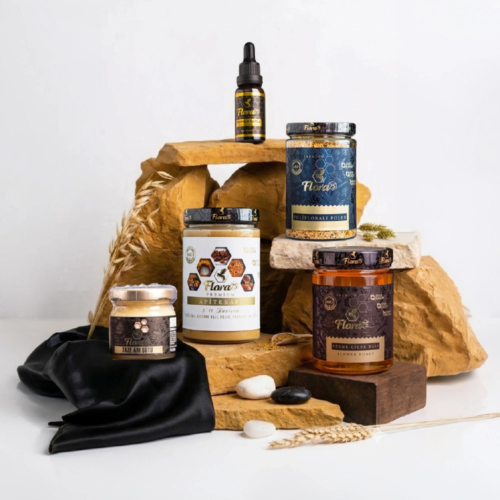 Doğal arı ürünlerinin bir araya geldiği destekleyici bir settir.